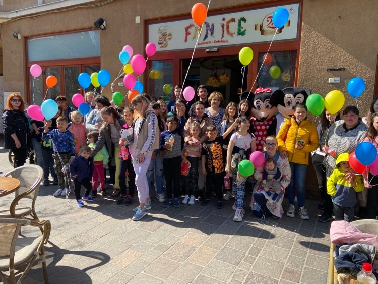 După momentele artistice, copiii au avut ocazia să participe la un atelier de pictat pe figurine de ipsos, urmând să descopere orașul printr-un tur cu autobusul turistic, destinația finală fiind o cofetărie unde îi aștepta Minnie și Mickey cu baloane colorate și unde au savurat o prăjitură și s-au răcorit cu un suc.