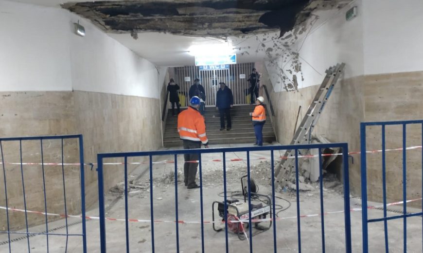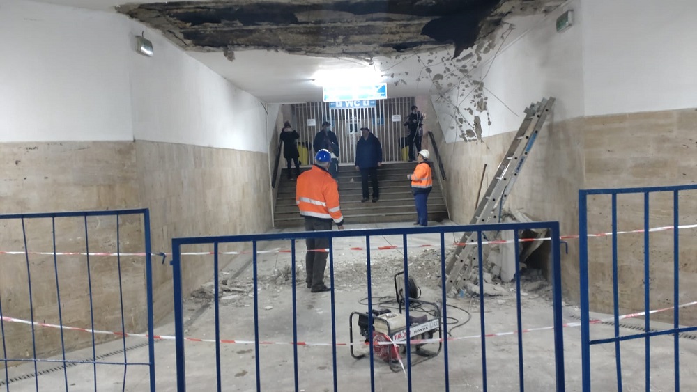 O porțiune din tavanul pasajului de lângă Gara Oradea s-a desprins și a căzut. Din fericire, nu s-au înregistrat victime
