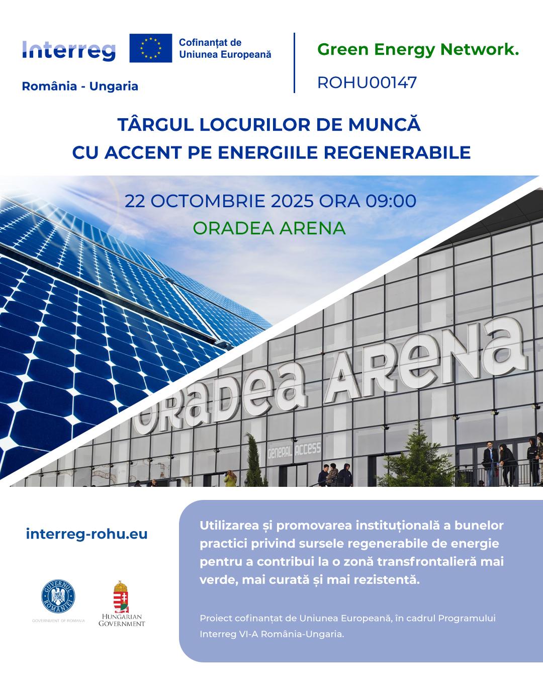 Evenimentul este organizat ca parte din proiectul Green Energy Network – ROHU00147 „Utilizarea și promovarea instituțională a bunelor practici privind sursele regenerabile de energie pentru a contribui la o zonă transfrontalieră mai verde, mai curată și mai rezistentă”, cofinanțat de Uniunea Europeană, prin Programul Interreg VI-A România-Ungaria.