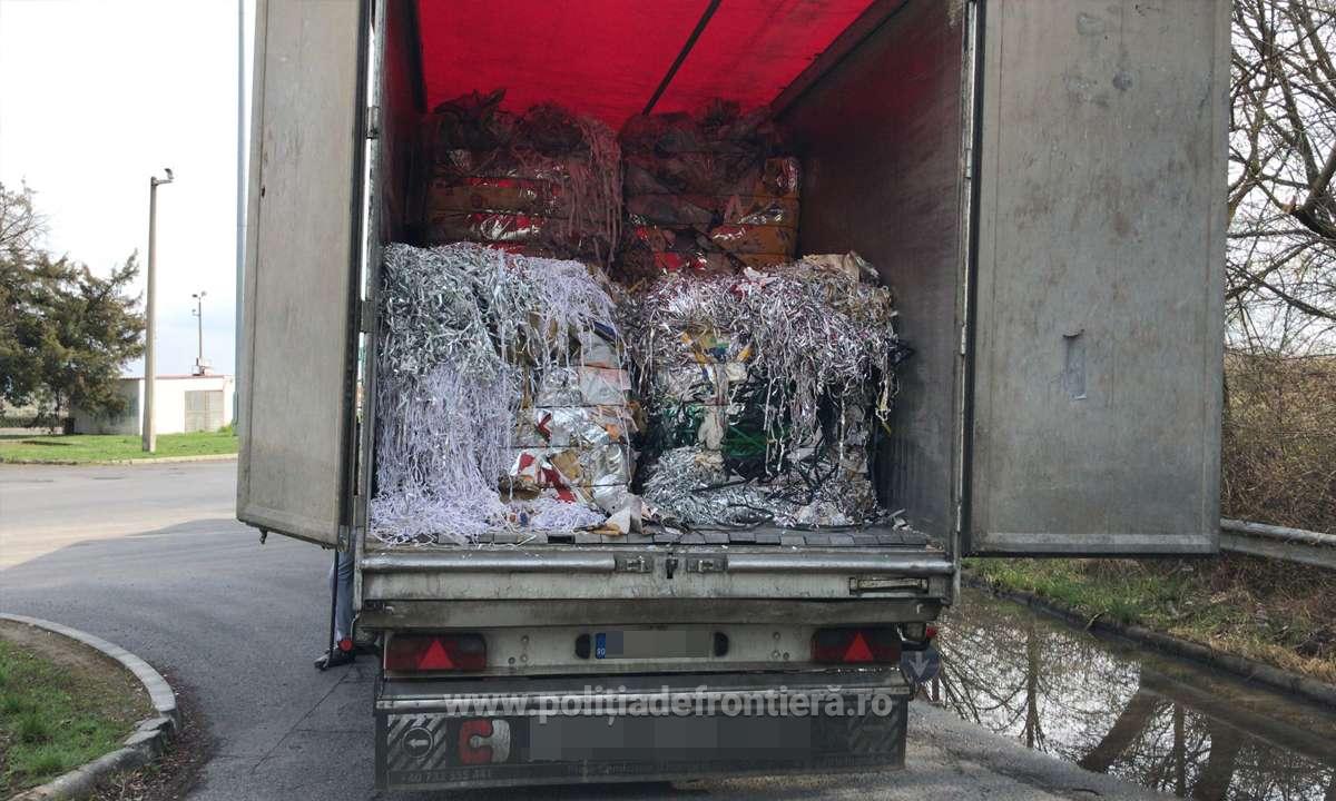 În data de 04.04.2022, poliţiştii de frontieră din cadrul Punctului de Trecere a Frontierei Borș I au efectuat, pe sensul de intrare în ţară, controlul specific asupra unui ansamblu format din cap tractor și semiremorcă, înmatriculat în România, condus de un cetăţean român. Acesta transporta, conform documentelor de însoțire a mărfii deșeuri din hârtie, încărcate în Italia, pentru o societate comercială din judeţul Arad.