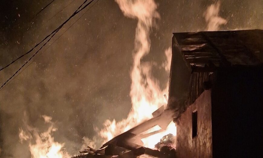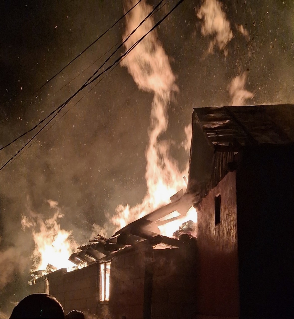 La sosirea forțelor de intervenție, incendiul se manifesta deosebit de violent, cu flacără deschisă și degajări mari de fum, la trei construcții auxiliare și la nivelul acoperișului acestora, care era comun cu cel al casei, existând riscul propagării acestuia la încă trei clădiri.