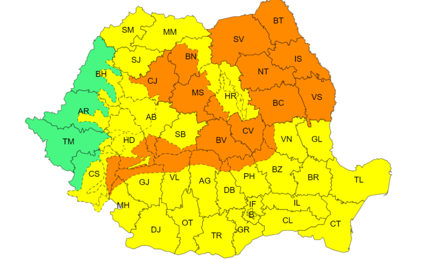 Mai multe zone din țară intră de sâmbătă noaptea sub avertizări cod galben și portocaliu de viscol şi vânt de sâmbătă seară sau de duminică noapte, anunţă meteorologii, care au actualizat prognoza iniţială.