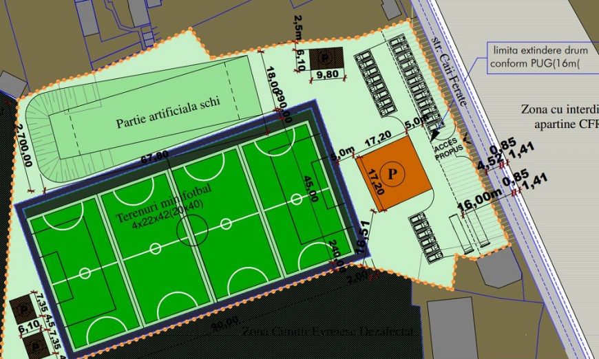 Pe amplasament se va amenaja un teren sportiv multifuncțional, un spațiu de alimentație publică, vestiare și locuri de parcare aferente.