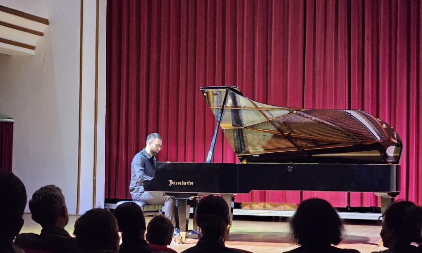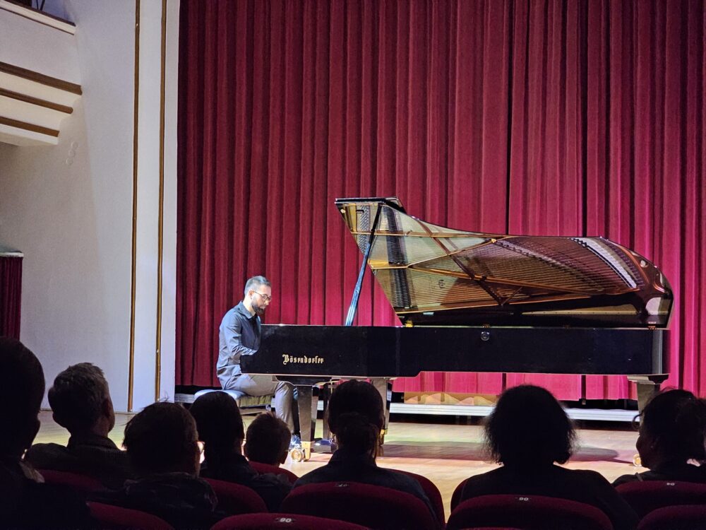 Înaintea concertului, tânărul pianist a rememorat ultimul recital susținut la Oradea, chiar cu o seară înaintea izbucnirii războiului din Ucraina în 2022, iar apoi a explicat și de ce în recitalurile sale care cuprind piese de Schubert include și piese de Brahms. Aceasta este influența regretatului Radu Lupu.