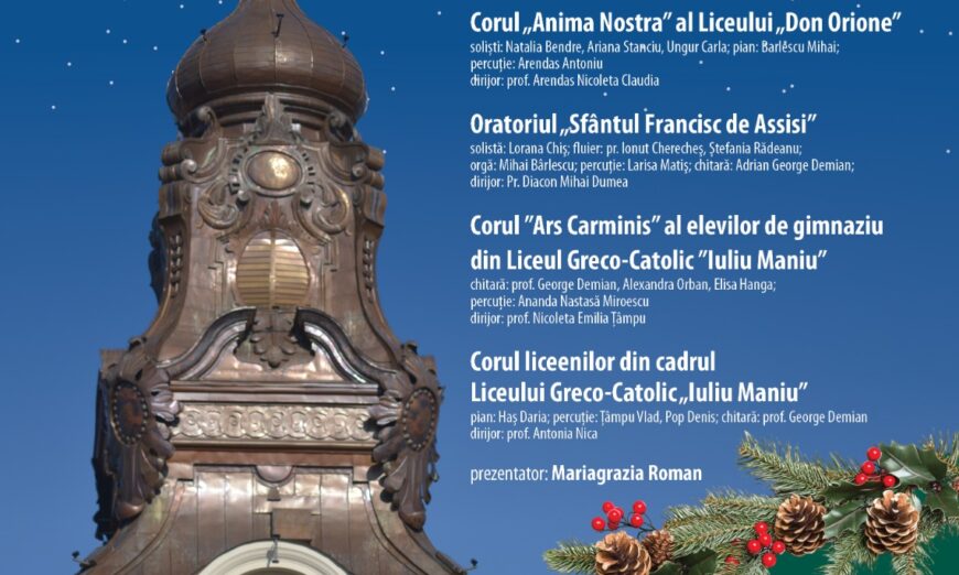 Vor participa corurile „Enjoy Music”, „Anima Nostra” (Liceul „Don Orione”), Oratoriul „Sfântul Francisc de Assisi”, „Ars Carminis” și corul liceenilor de la Liceul Greco-Catolic „Iuliu Maniu”, alături de soliști, instrumentiști și dirijorii acestora. Evenimentul va fi prezentat de Mariagrazia Roman.