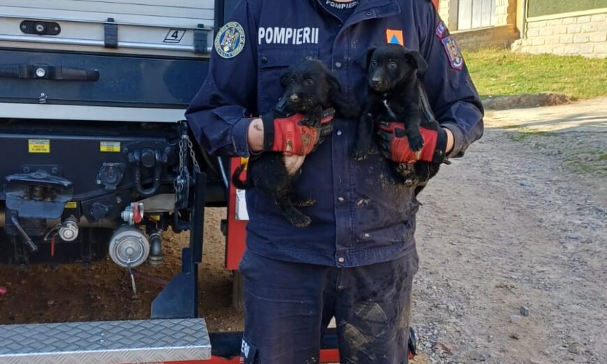 Misiune emoționantă pentru pompierii din Beiuș! Doi pui de câine au fost salvați astăzi dintr-o rețea de canalizare din localitatea Prisaca, comuna Uileacu de Beiuș, după o intervenție care a durat mai bine de două ore.