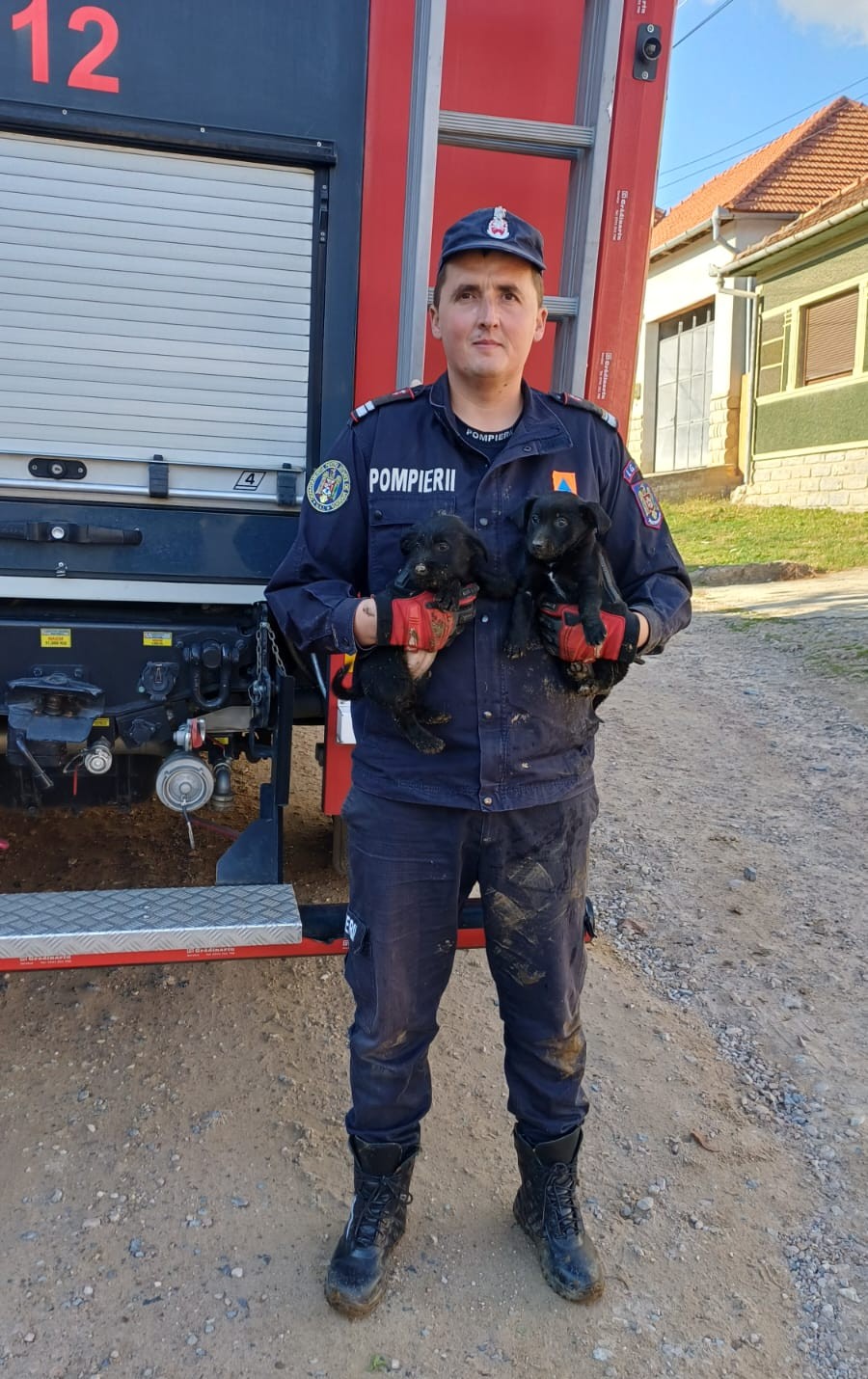 Pentru a ajunge la patrupede, pompierii au fost nevoiți să sape și să scoată un tub de aproximativ 50 de centimetri diametru și 1,5 metri adâncime, prin care au accesat țeava de canalizare, cu diametrul de circa 10 centimetri, unde se ascundeau cățeii speriați.