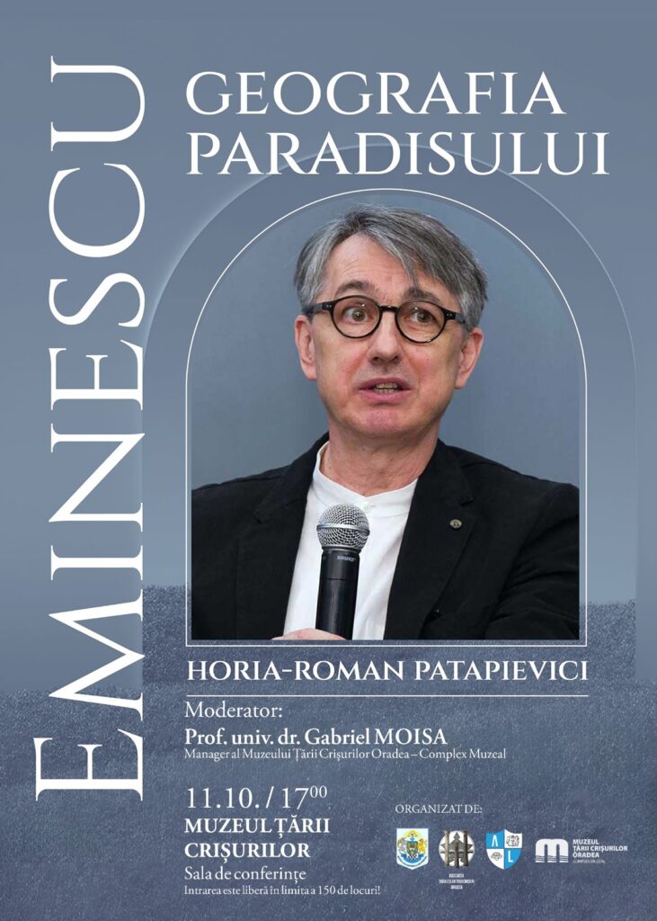 Sâmbătă, 11 octombrie, de la ora 17:00, Sala de conferințe a muzeului (Str. Armatei Române nr. 1/A) va găzdui conferința intitulată „EMINESCU – GEOGRAFIA PARADISULUI”, avându-l ca invitat pe Horia-Roman Patapievici, una dintre cele mai profunde voci ale culturii române contemporane.
