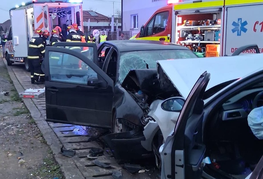 Din primele investigații efectuate de polițiști, la fața locului, s-a constatat că în accident au fost implicate două autoturisme.