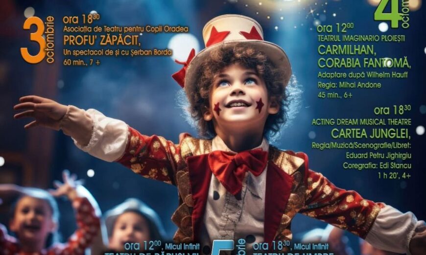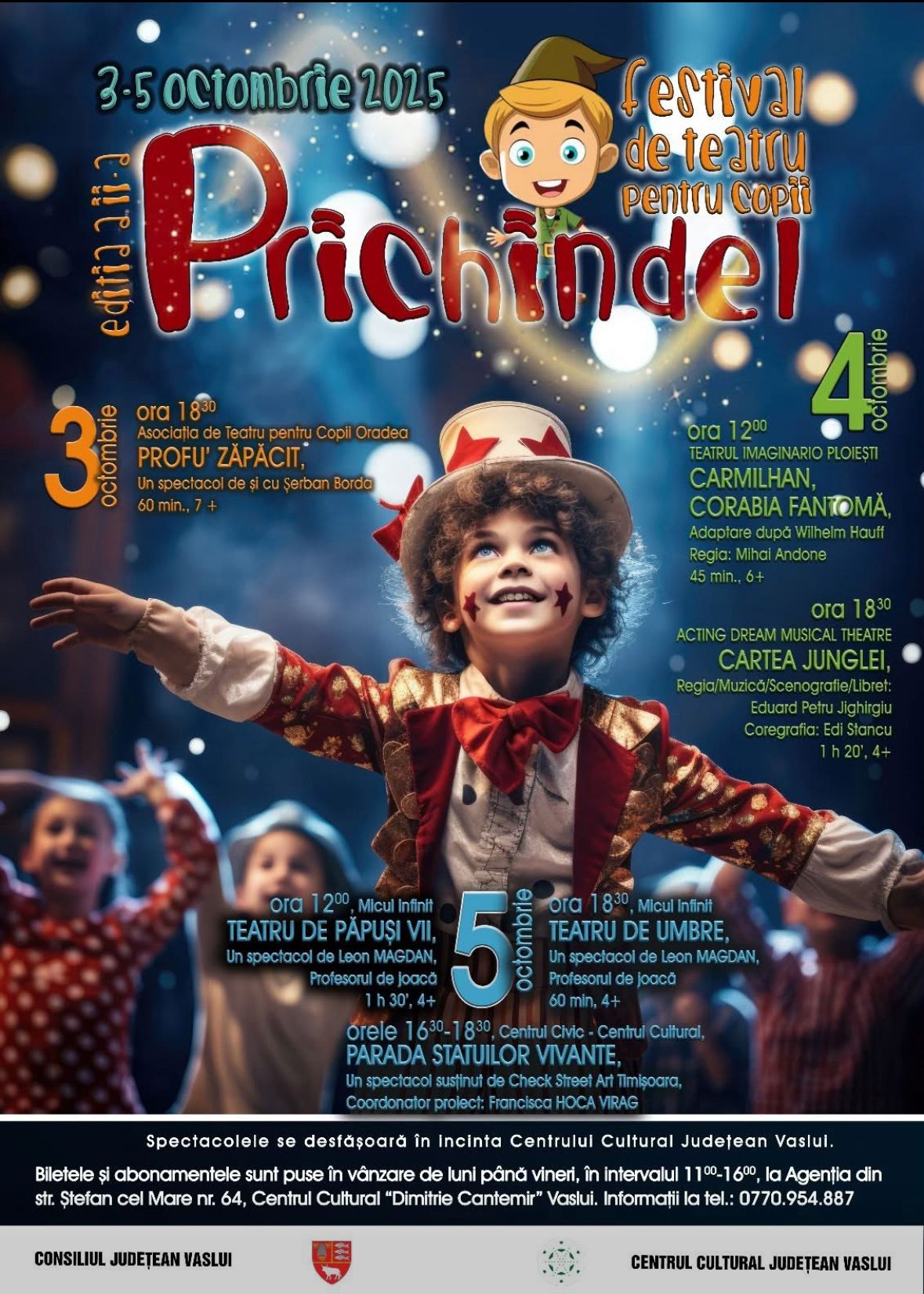 Între 3 și 5 octombrie, Centrul Cultural Județean Vaslui și Consiliul Județean Vaslui organizează a doua ediție a Festivalului „Prichindel”, care va aduce la Centrul Cultural „Dimitrie Cantemir” cinci spectacole pline de culoare — acces pe bază de bilete.