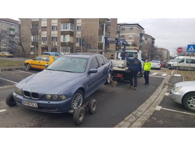 – autovehiculul marca BMW, având număr de înmatriculare BH 80 SLS, considerat a fi abandonat conform prevederilor Lg. 421/2002, aflat pe str. Milcovului, nr. 32A. Și în acest caz, proprietarul a fost somat să elibereze domeniul public, somația în vederea ridicării autovehiculului de către deținătorul legal fiind afișată pe caroserie, și comunicată prin afișare la adresa de domiciliu a proprietarului.