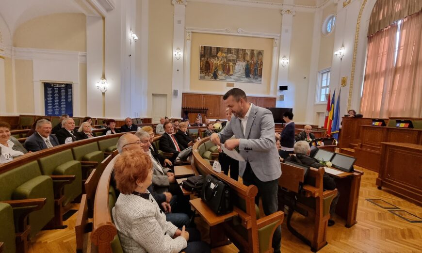 Astăzi, 5 noiembrie, în Sala „Traian Moșoiu” a Primăriei Oradea, s-a desfășurat o nouă ediție a evenimentului „Nunta de Aur”. Cu acest prilej, 28 de cupluri din municipiu au fost celebrate pentru împlinirea a 50 de ani de căsătorie neîntreruptă.