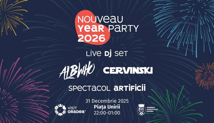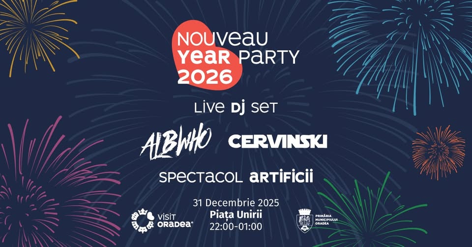 Nouveau Year Party 2026 este un eveniment dedicat întregii comunități, deschis tuturor celor care doresc să celebreze trecerea dintre ani în Piața Unirii din Oradea. Evenimentul este organizat de Asociația pentru Promovarea Turismului din Oradea și Regiune, Visit Oradea, cu sprijinul Primăriei Municipiului Oradea.