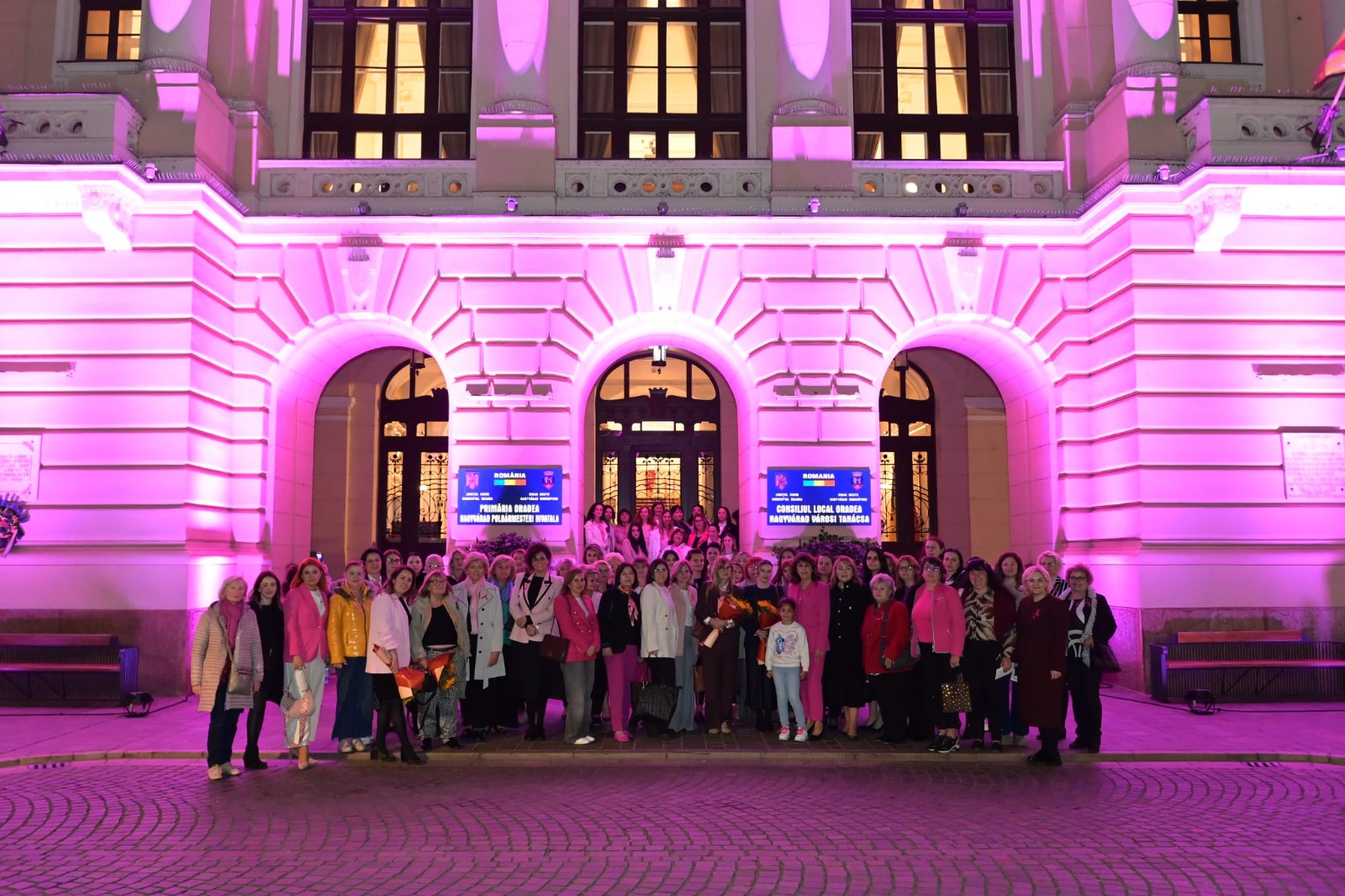 Tot în semn de solidaritate, începând cu ora 19:00, clădirea Primăriei Oradea a fost iluminată în roz – culoarea simbol a luptei împotriva cancerului de sân. Prin acest gest, administrația locală transmite un mesaj de sprijin femeilor diagnosticate cu această boală și reamintește tuturor orădencelor că un control medical anual poate face diferența între viață și moarte.