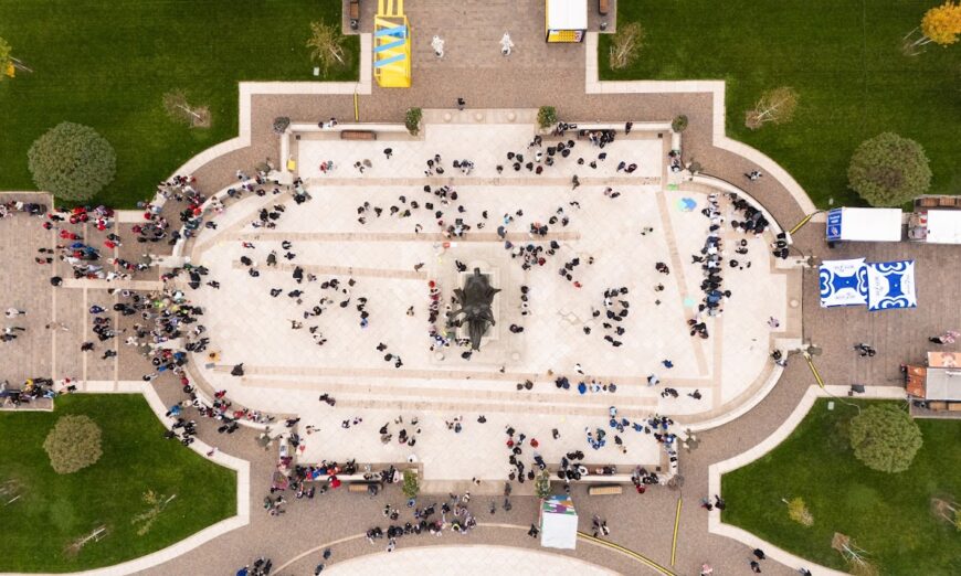Aproape 600 de copii s-au adunat în Piața Unirii și în jurul Catedralei Sfântul Nicolae, uniți de un scop comun: realizarea celei mai lungi benzi desenate din România.