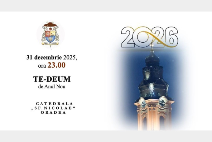 Credincioșii greco-catolici sunt invitați, astăzi, 31 decembrie, să întâmpine Noul An în rugăciune, în Catedrala „Sf. Nicolae” din Oradea. De la ora 23.00, va fi oficiată slujba de Te Deum, celebrată de Preasfinția Sa Virgil Bercea, episcop greco-catolic de Oradea, un moment de recunoștință și reflecție la trecerea dintre ani.