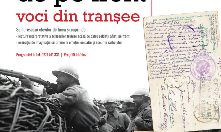 Atelierul va cuprinde o lectură interpretativă a scrisorilor trimise acasă de către soldații aflați pe front și un exercițiu de imaginație cu privire la emoție, empatie și ecourile războiului.