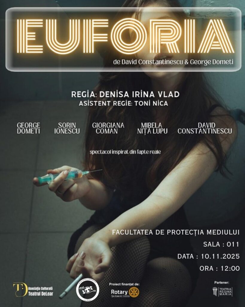 Rotary Club Oradea Art Nouveau a continuat, în această toamnă, proiectul de educație și prevenție a consumului de droguri, prin spectacolul de teatru „Euforia”, inspirat din experiențe reale ale consumatorilor și aparținătorilor acestora.