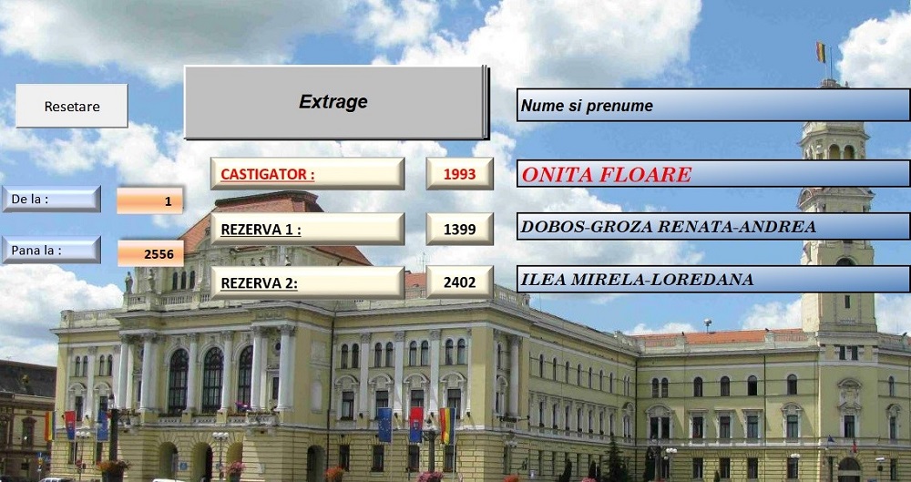 Extragerea computerizată a desemnat-o câștigătoare pe Floare Onița, domiciliată pe str. Camil Petrescu, care va fi înștiințată prin adresă la domiciliu cu privire la posibilitatea ridicării premiului de la sediul Primăriei, în termen de 30 de zile. Voucherul oferă o zi de acces la Aquaparkul Nymphaea pentru 2 adulți și 2 copii sub 18 ani şi este valabil până la sfârşitul anului. Conform regulamentului, au fost extrase și două rezerve, care ar putea beneficia de premiu în cazul în care câștigătorul, din diverse motive, nu își va revendica voucherul în termenul prevăzut.