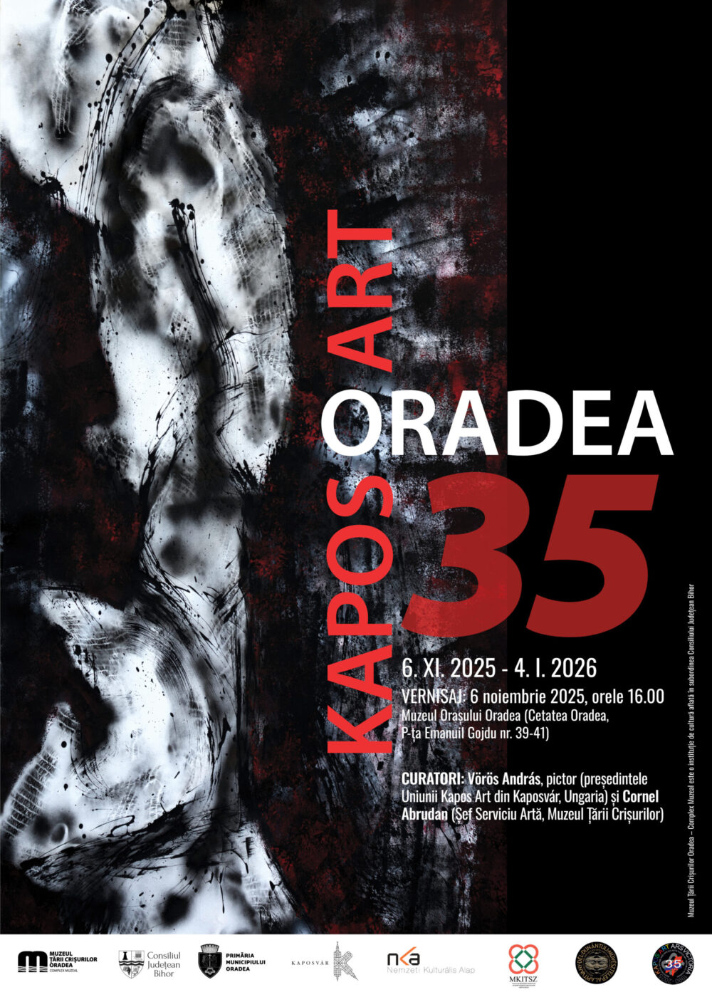 Muzeul Țării Crișurilor Oradea – Complex Muzeal, în parteneriat cu Consiliul Județean Bihor, Primăria Municipiului Oradea, Kapos ART, Kaposvár Megyei Jogú Város, Nemzeti Kulturális Alap, MKITSZ și Fundația pentru Tabăra Artiștilor Sud-Transdanubieni organizează vernisajul expoziției Kapos ART 35. Evenimentul se va desfășura joi, 6 noiembrie 2025, ora 16.00, la Muzeul Orașului Oradea (Piața E. Gojdu nr. 39-41).