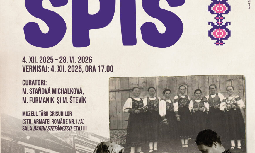 Muzeul Țării Crișurilor Oradea – Complex Muzeal și Múzeum Spiša (Slovacia), în parteneriat cu Regiunea autonomă Košice (Slovacia), Consiliul Slovac pentru Susținerea Artei, Consiliul Județean Bihor și Primăria Municipiului Oradea, organizează vernisajul expoziției Minoritățile din Spiš. Evenimentul se va desfășura joi, 4 decembrie 2025, ora 17.00, în Sala Barbu Ștefănescu (etaj III), la Muzeul Țării Crișurilor (Str. Armatei Române nr. 1/A).